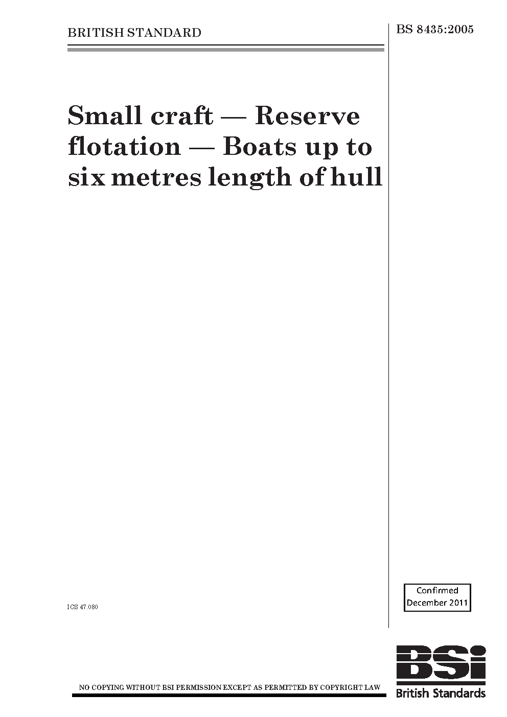 Small craft. Reserve flotation. Boats up to six metres length of hull