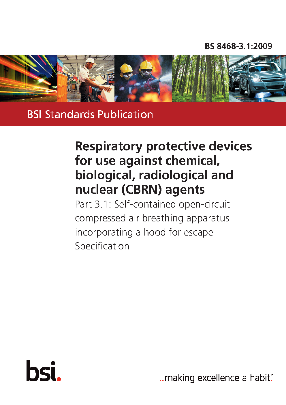 Respiratory protective devices for use against chemical, biological, radiological and nuclear (CBRN) agents Self-contained open-circuit compressed air breathing apparatus incorporating a hood escape. Specification