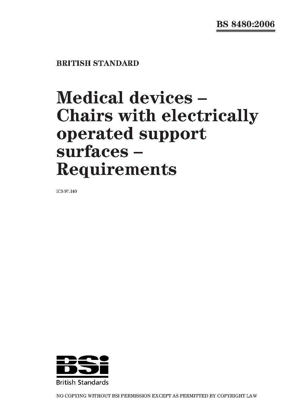 Medical devices. Chairs with electrically operated support surfaces. Requirements
