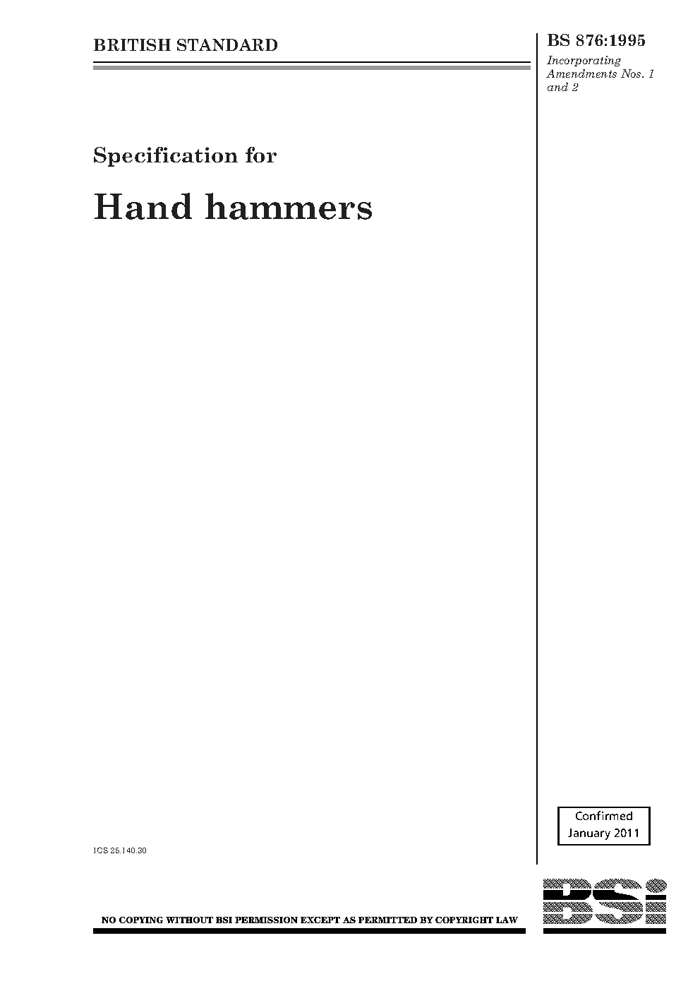 Angles (geometry);Occupational safety;Pull-out tests;Dimensions;Mechanical testing;Grain size;Heat treatment;Hardness testing;Wood;Marking;Safety measures;Hand-hammers;Forgings;Hardness;Handles (tools);Performance testing;Shape;Bend testing;Mass;Impact testing;Hand tools;Steels