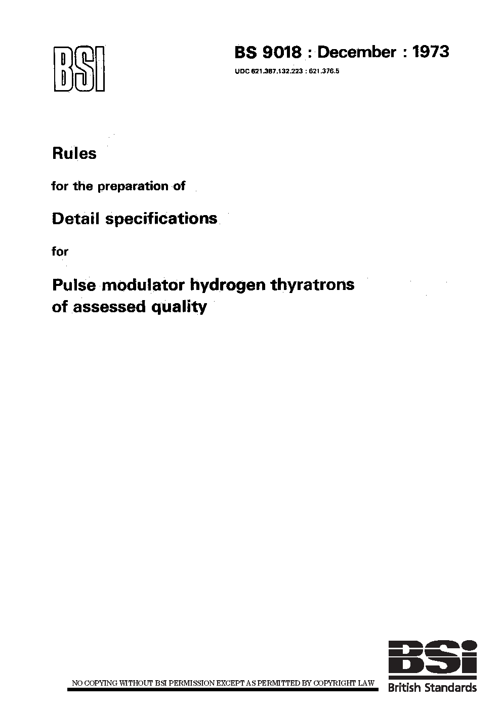Rules for the preparation of detail specifications for pulse modulator hydrogen thyratrons of assessed quality