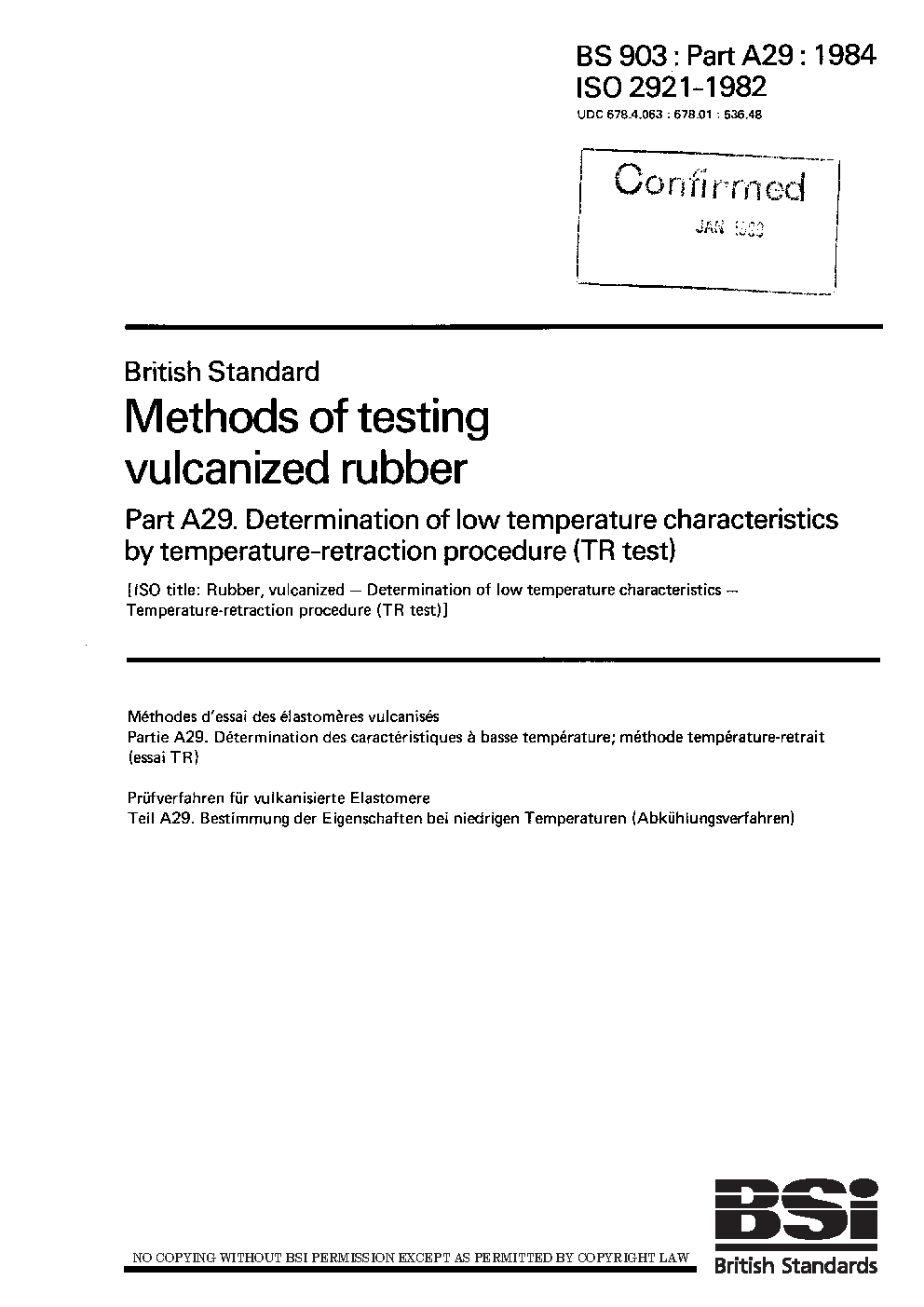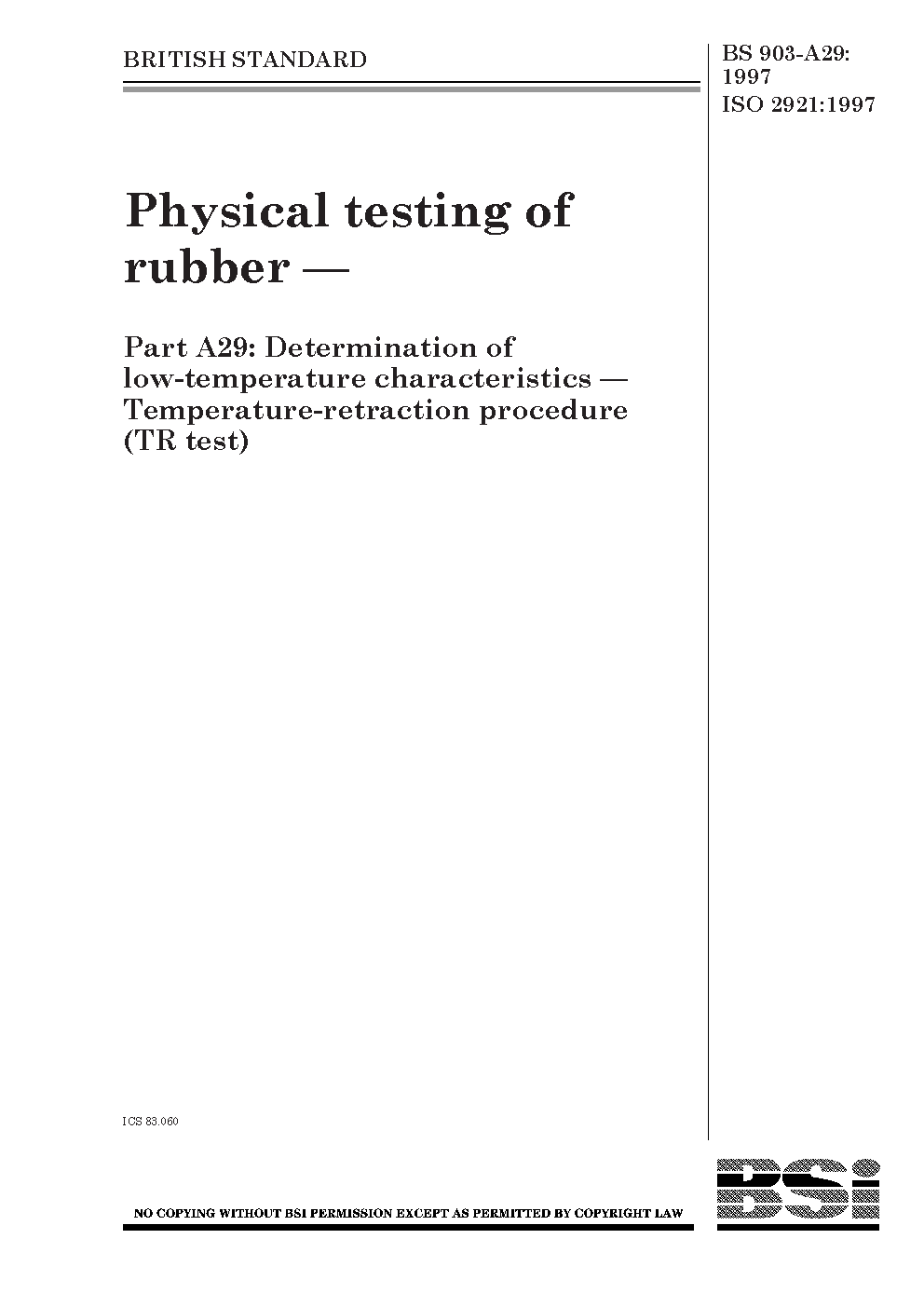 Physical testing of rubber Determination low-temperature characteristics. Temperature-retraction procedure (TR test)