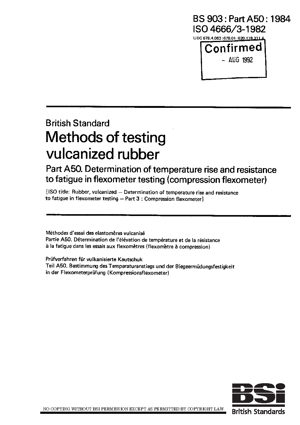 Methods of testing vulcanized rubber. Determination temperature rise and resistance to fatigue in flexometer (compression flexometer)
