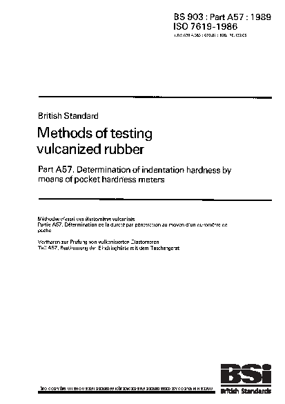 Physical testing of rubber Determination indentation hardness by means pocket meters