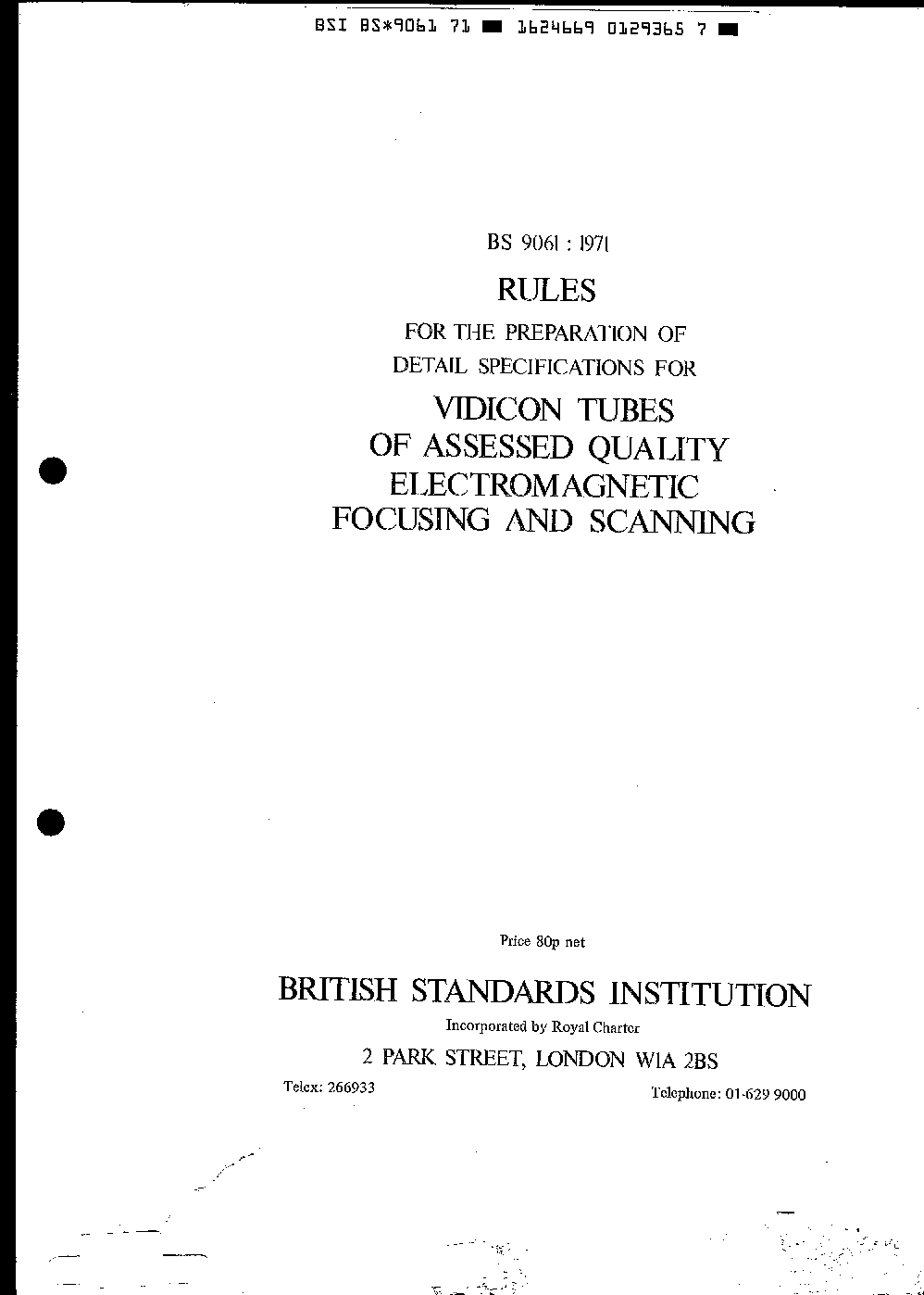 Rules for the preparation of detail specifications for vidicon tubes of assessed quality electromagnetic focusing and scanning