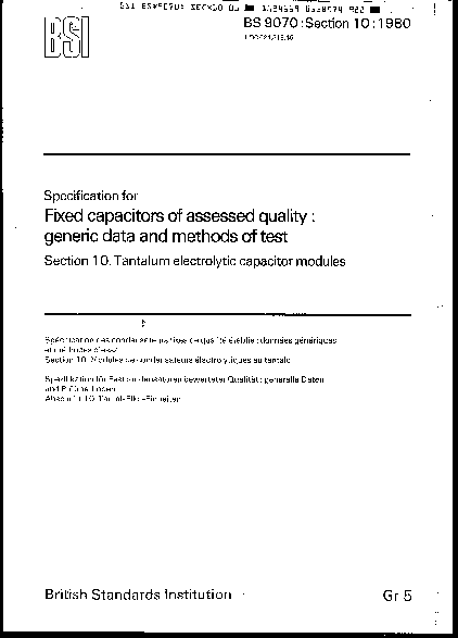 Specification for fixed capacitors of assessed quality: generic data and methods test Tantalum electrolytic capacitor modules