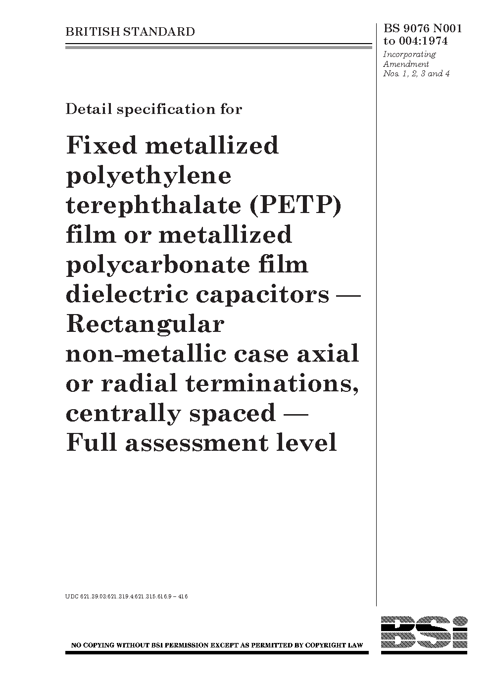 BS 9076 N001 to 004:1974