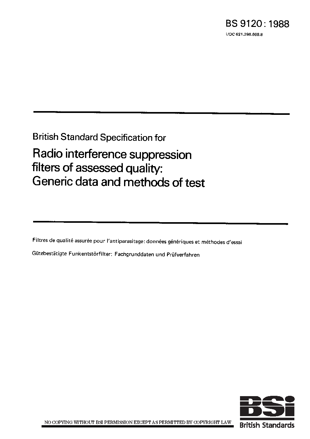 Specification for radio interference suppression filters of assessed quality: generic data and methods of test