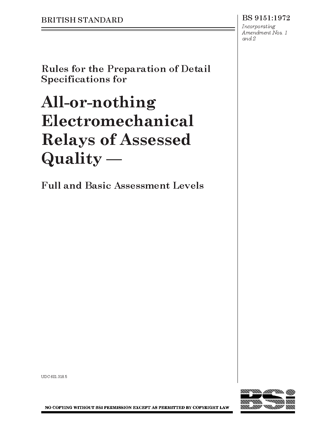 Rules for the preparation of detail specifications for all-or-nothing electromechanical relays of assessed quality. Full and basic assessment levels