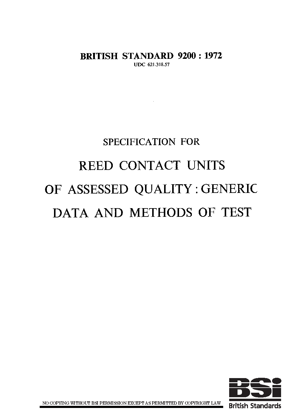 Specification for reed contact units of assessed quality: generic data and methods of test
