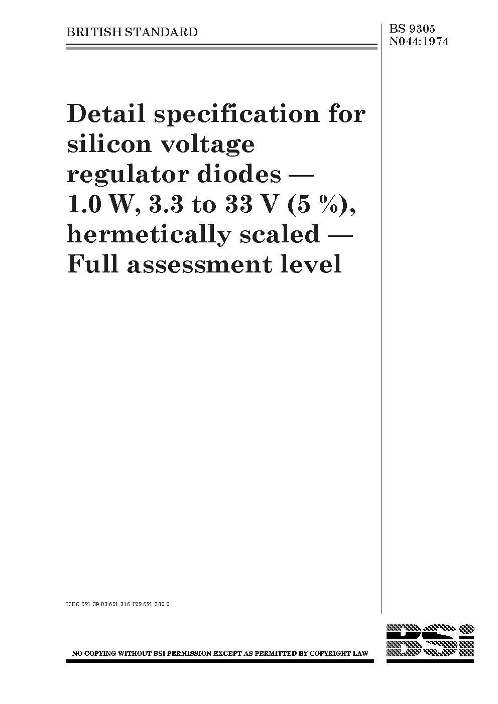 Detail specification for silicon voltage regulator diodes. 1.0 W, 3.3 to 33 V (5%), hermetically sealed. Full assessment level