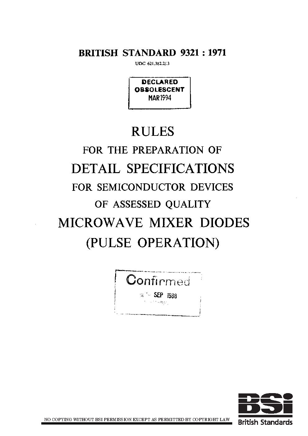 Rules for the preparation of detail specifications for semiconductor devices of assessed quality: microwave mixer diodes (pulse operation)