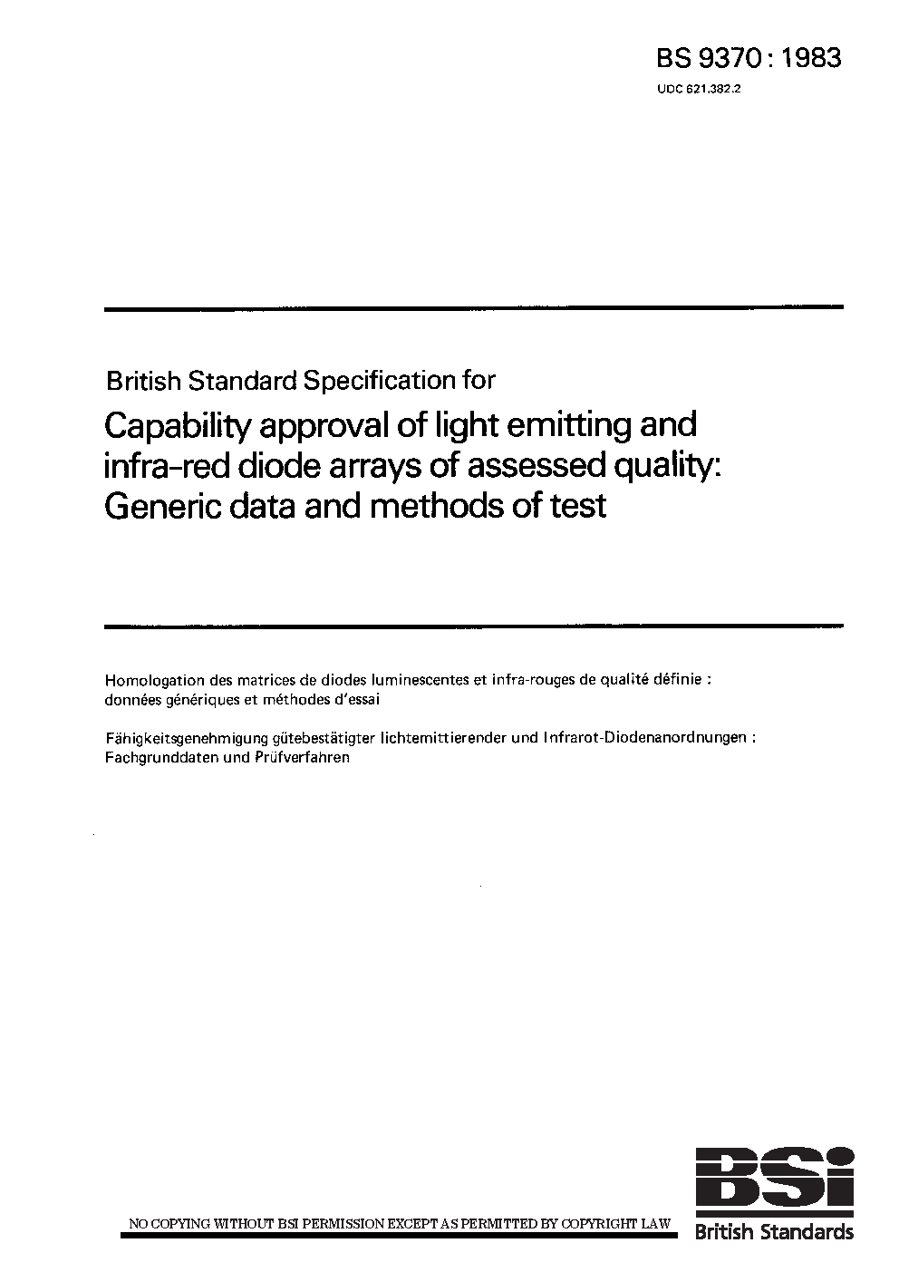 Specification for capability approval of light emitting and infra-red diode arrays of assessed quality: generic data and methods of test