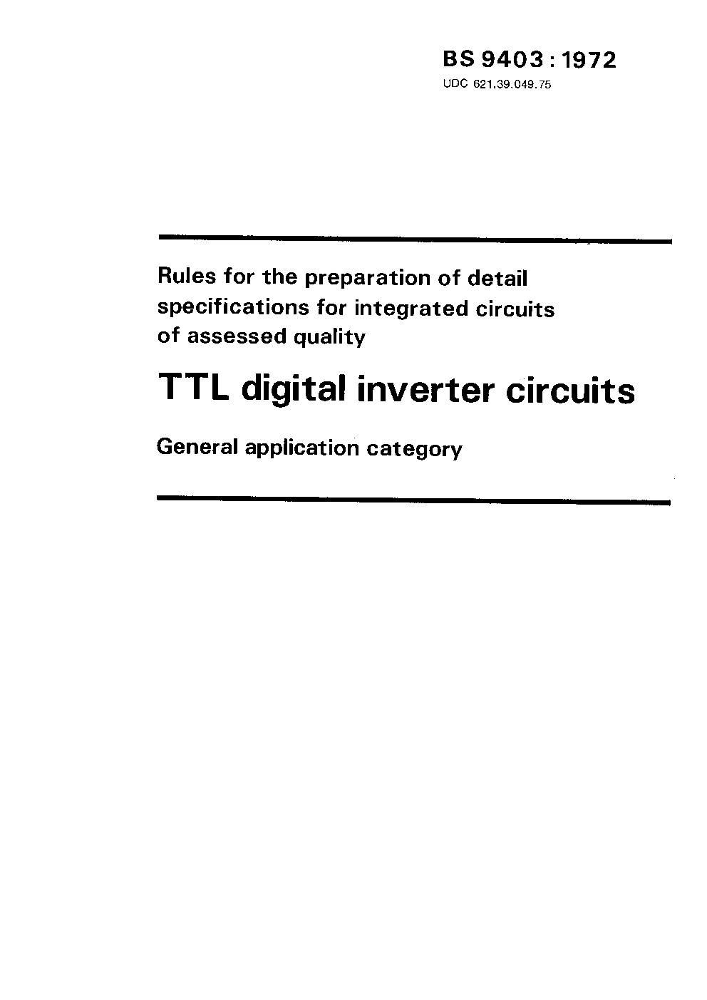 Rules for the preparation of detail specifications for integrated circuits of assessed quality: TTL digital inverter circuits. General application category