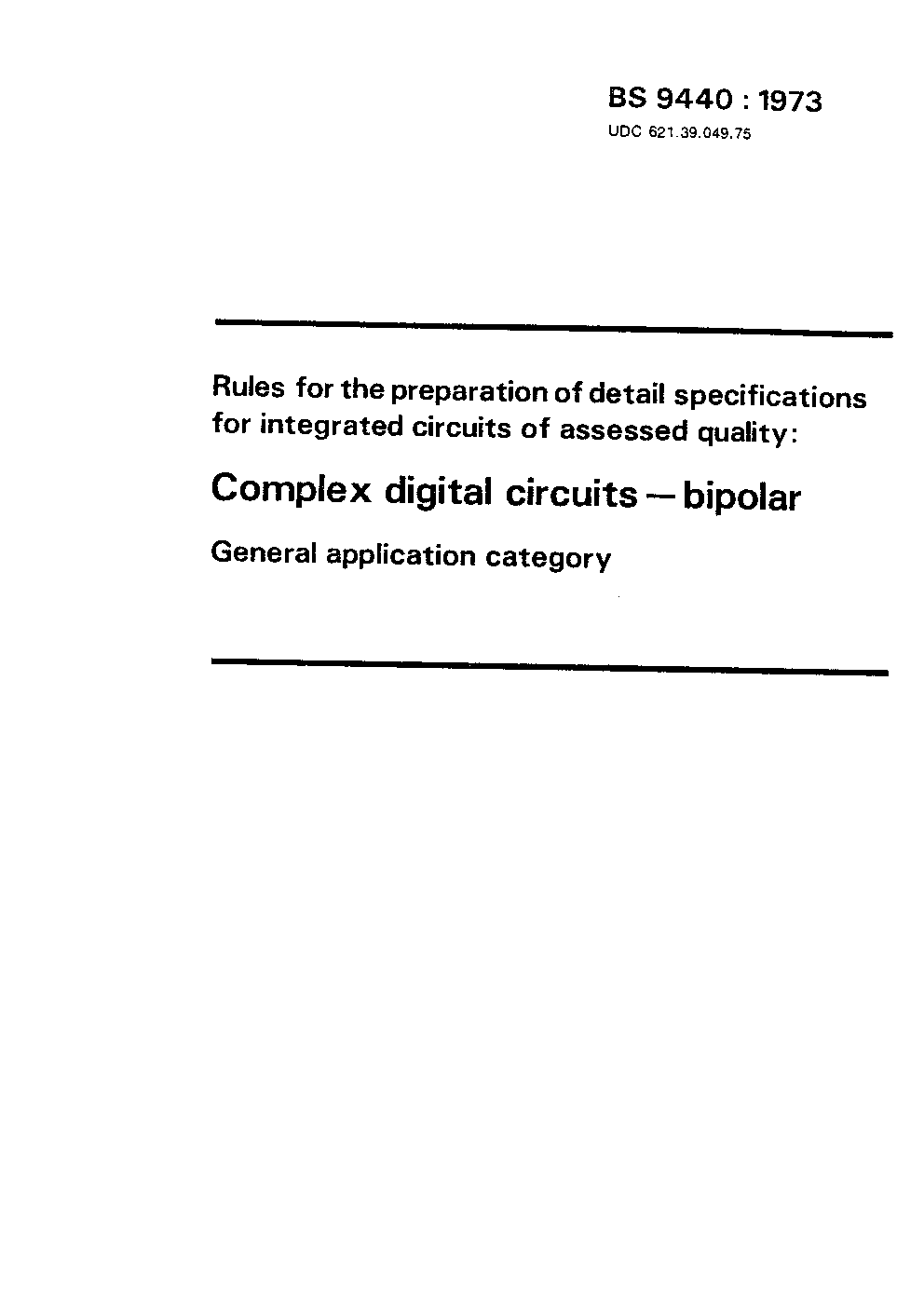 Rules for the preparation of detail specifications for integrated circuits of assessed quality: complex digital circuits - bipolar. General application category
