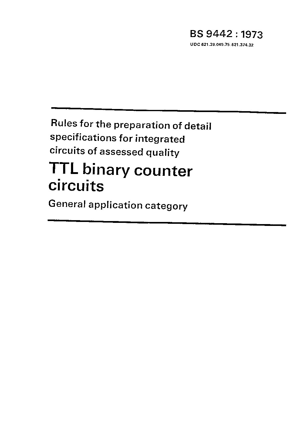 Rules for the preparation of detail specifications for integrated circuits of assessed quality: TTL binary counter circuits. General application category