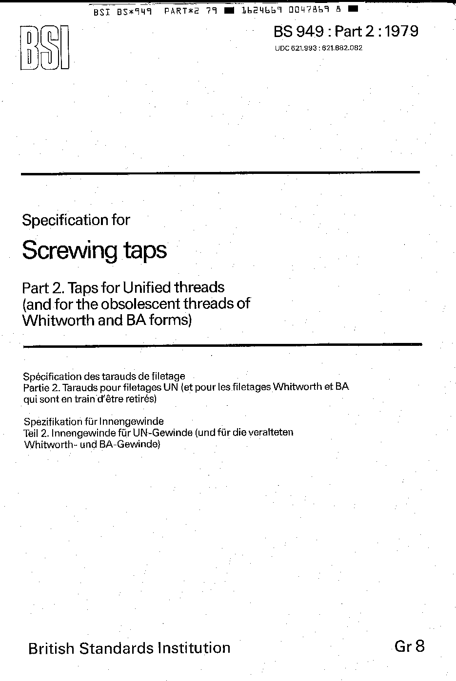 Screwing taps Taps for Unified threads (and the obsolescent of Whitworth and BA forms)