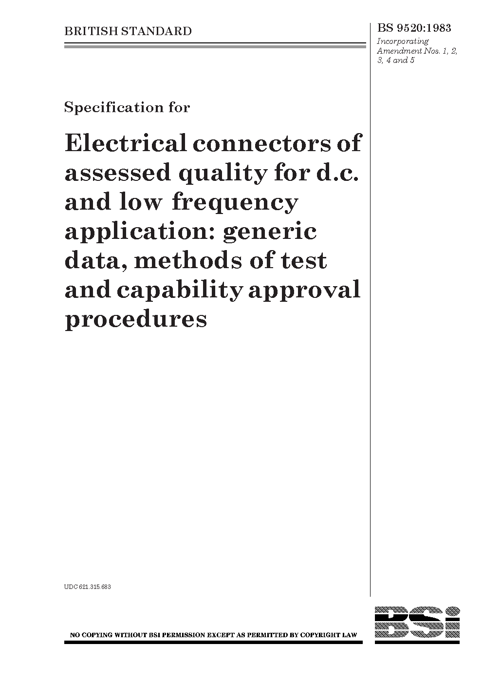 Specification for electrical connectors of assessed quality for d.c. and low frequency application: generic data, methods of test and capability approval procedures