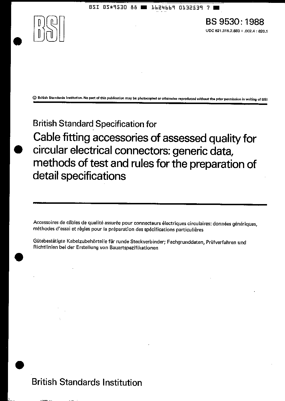 Specification for cable fitting accessories of assessed quality for circular electrical connectors: generic data, methods of test and rules for the preparation of detail specifications