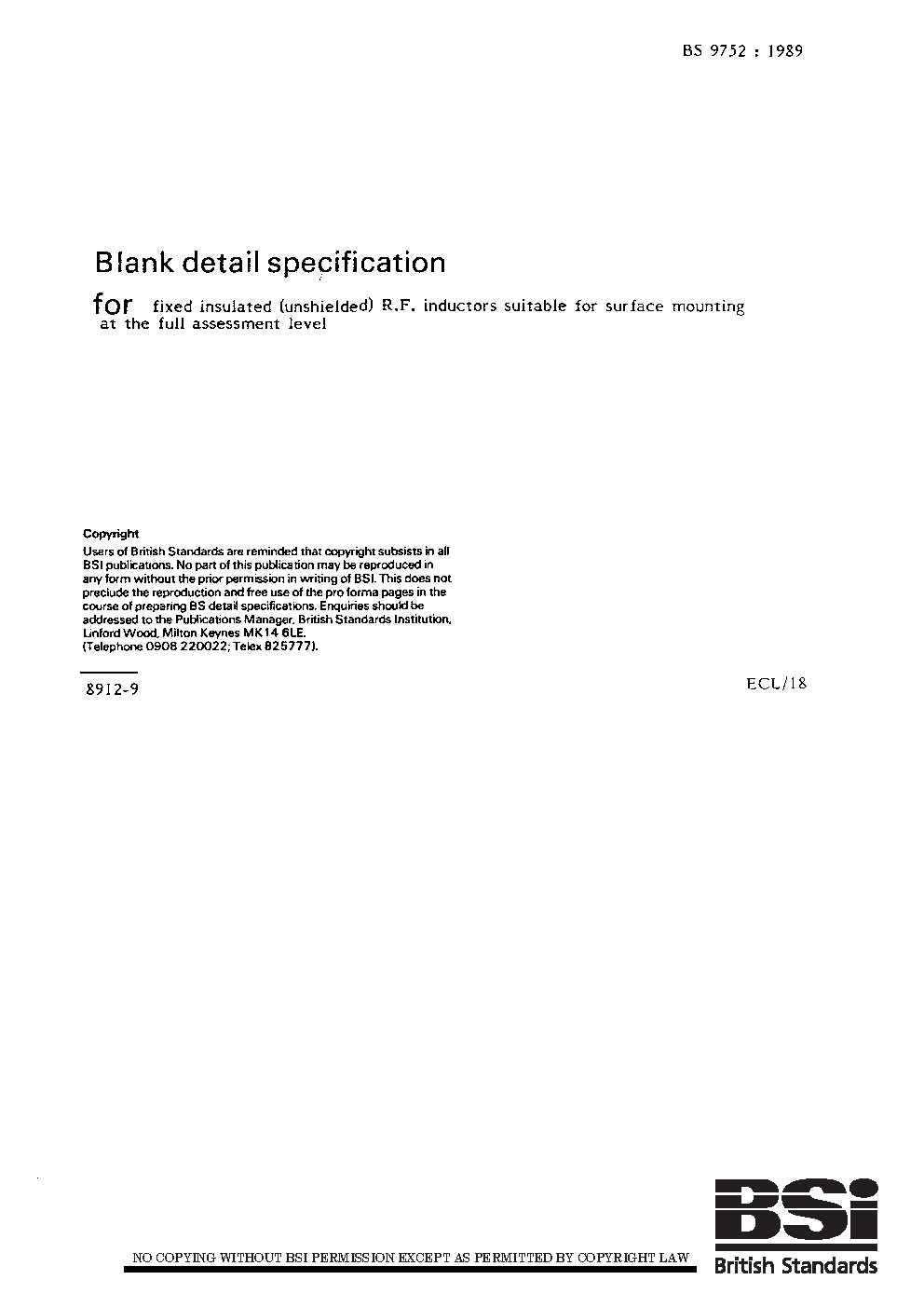 Blank detail specification for fixed insulated (unshielded) r.f. inductors suitable for surface mounting at the full assessment level