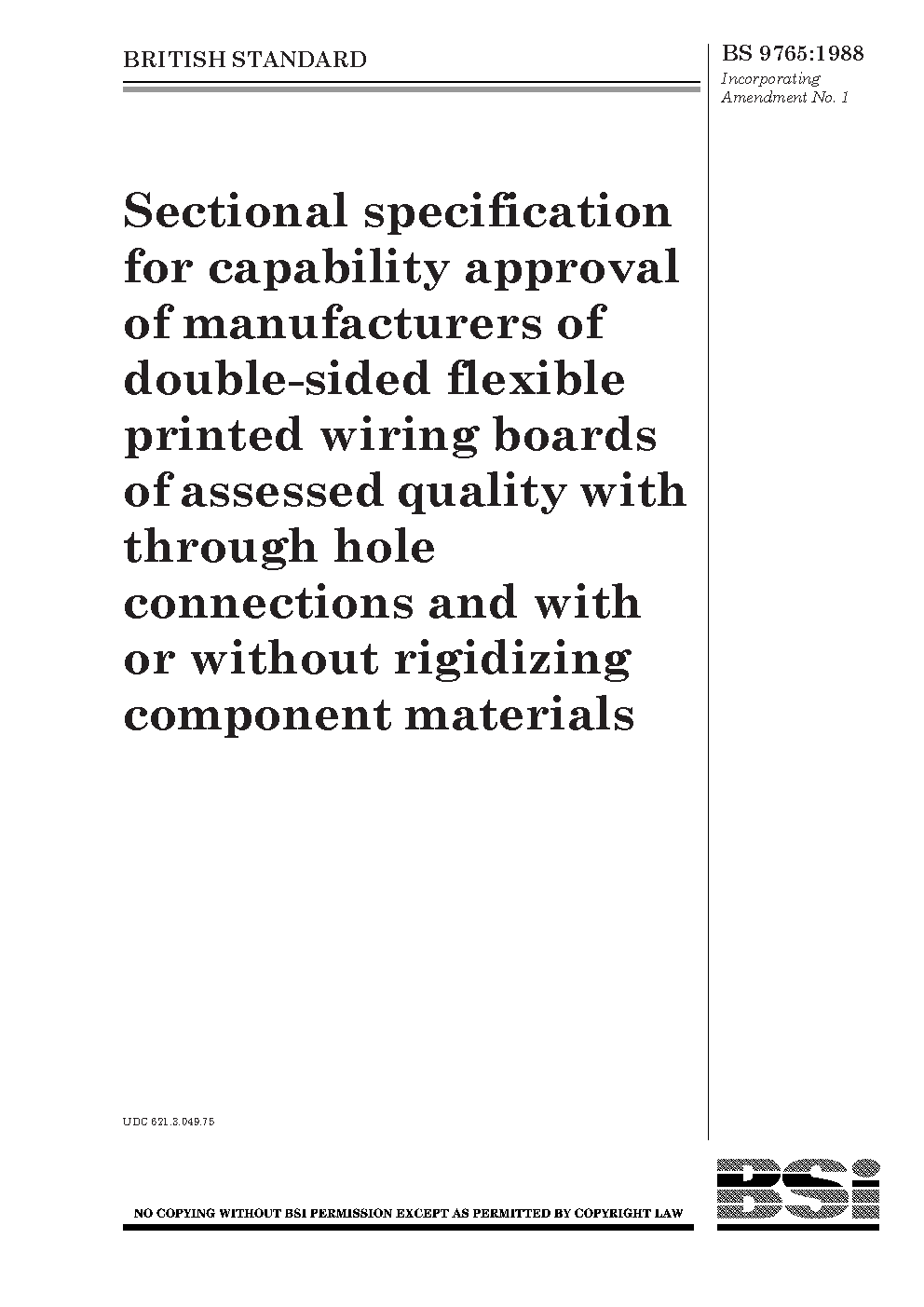 Specification for printed circuits of assessed quality: sectional specification for double-sided flexible and flexi-rigid printed circuits with through hole connections
