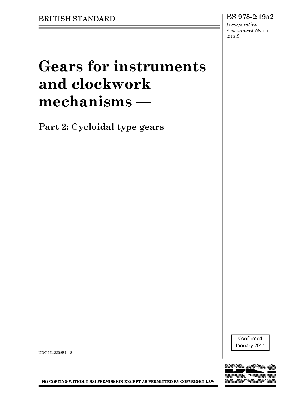 Gear parameters;Dimensional tolerances;Imperial system;Clock movements;Basic racks;Instruments;Tooth profiles;Dimensions;Time-measuring instrument components;Gear wheels;Spur gears;Gear drives