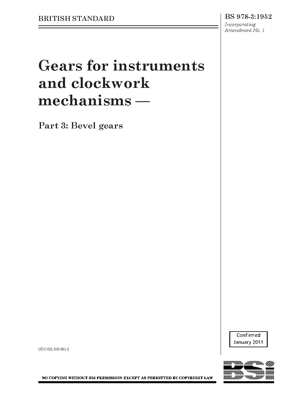 Imperial system;Gear drives;Gear parameters;Spiral gears;Bevel gears;Clock movements;Conical shape;Basic racks;Grades (quality);Dimensions;Time-measuring instrument components;Instruments;Dimensional tolerances;Tooth profiles