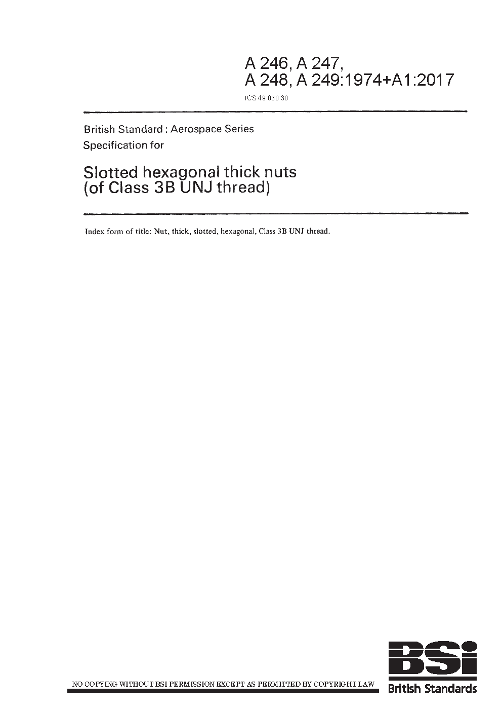 Aerospace series. Specification for Slotted hexagonal thick nuts (of Class 3B UNJ thread)