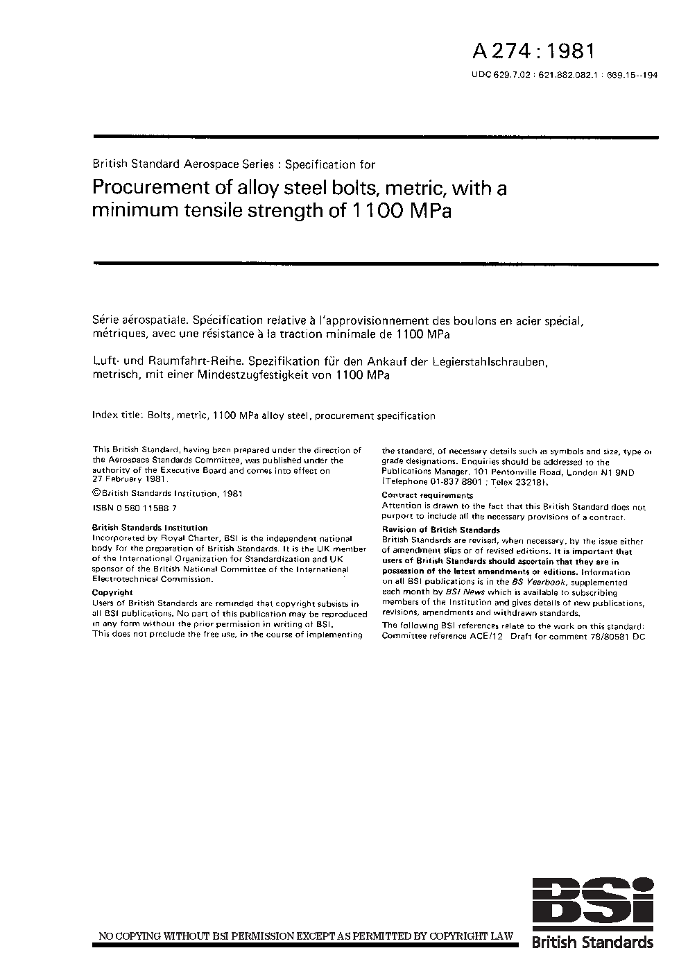 Quality assurance systems;Steels;Fasteners;Loading;Approval testing;Surface defects;Threaded components;Threaded fasteners;Bolts;Acceptance (approval);Performance;External-thread fasteners;Defects;Performance testing;Tensile loading;Statistical quality control;Alloy steels;Tensile strength;Fatigue testing;Qualification approval;Sampling methods;Aircraft components