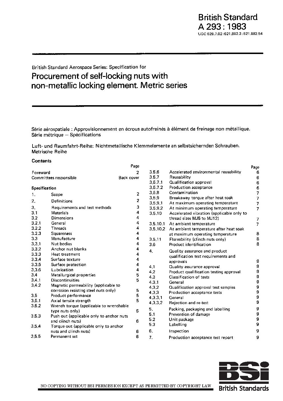 Specification for procurement of self-locking nuts with non-metallic locking element. Metric series