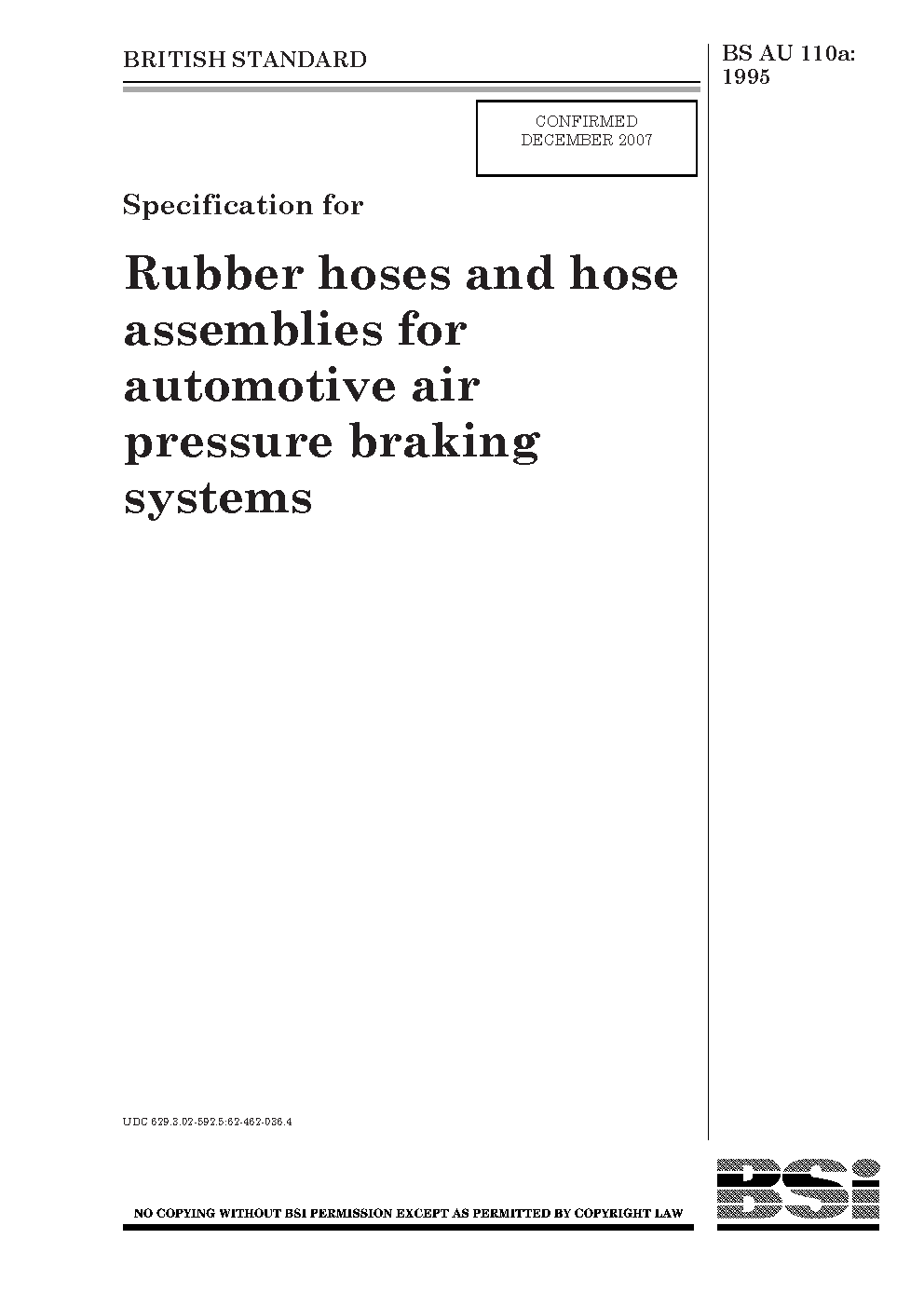 Specification for rubber hoses and hose assemblies for automotive air pressure braking systems