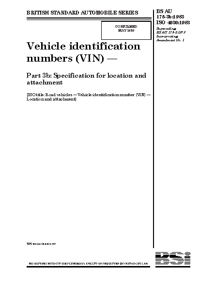 Vehicle identification numbers (VIN) Specification for location and attachment