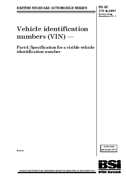 Vehicle identification numbers (VIN) Specification for a visible vehicle number