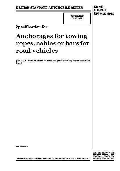 Specification for anchorages for towing ropes, cables or bars for road vehicles