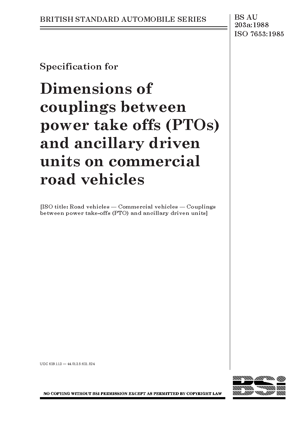 Specification for dimensions of couplings between power take offs (PTOs) and ancillary driven units on commercial road vehicles