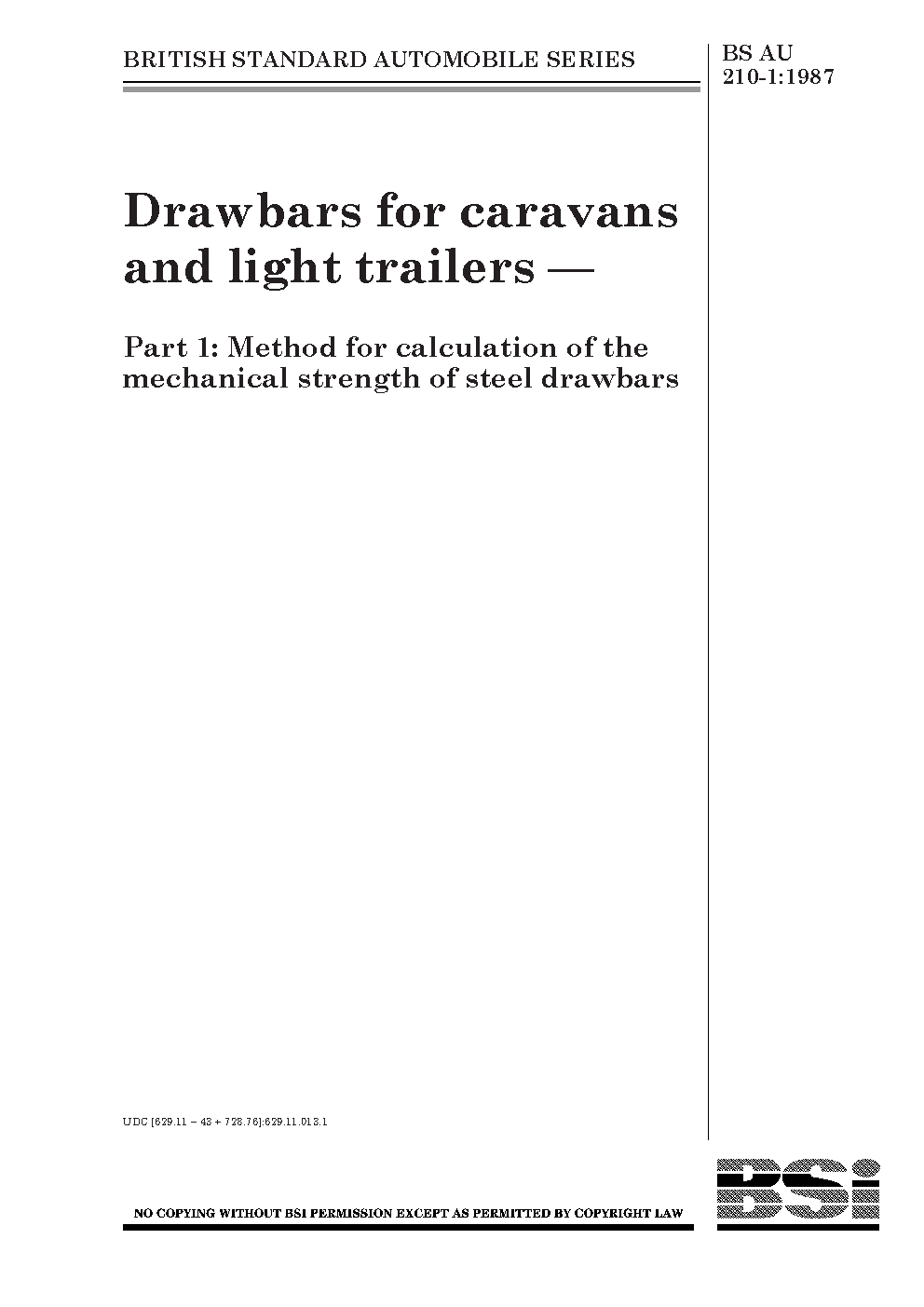 Drawbars for caravans and light trailers Method of calculation the mechanical strength steel drawbars