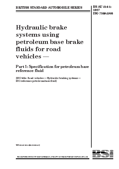 Hydraulic brake systems using petroleum base fluids for road vehicles Specification reference fluid