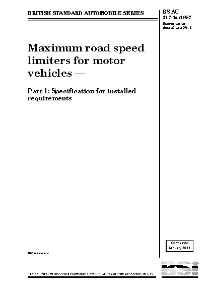 Maximum road speed limiters for motor vehicles Specification installed requirements