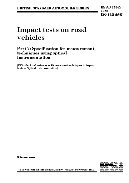 Impact tests on road vehicles. Specification for measurement techniques using optical instrumentation