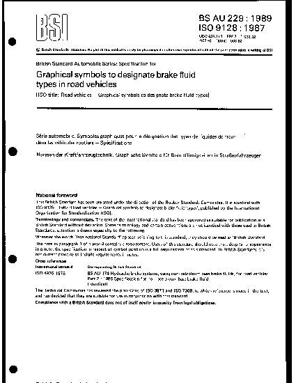 Specification for graphical symbols to designate brake fluid types in road vehicles
