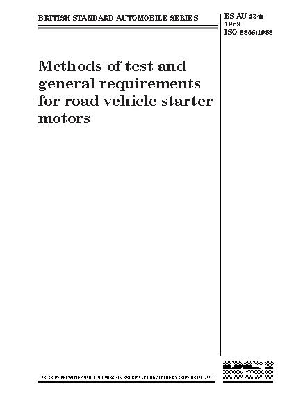 Methods of test and general requirements for road vehicle starter motors