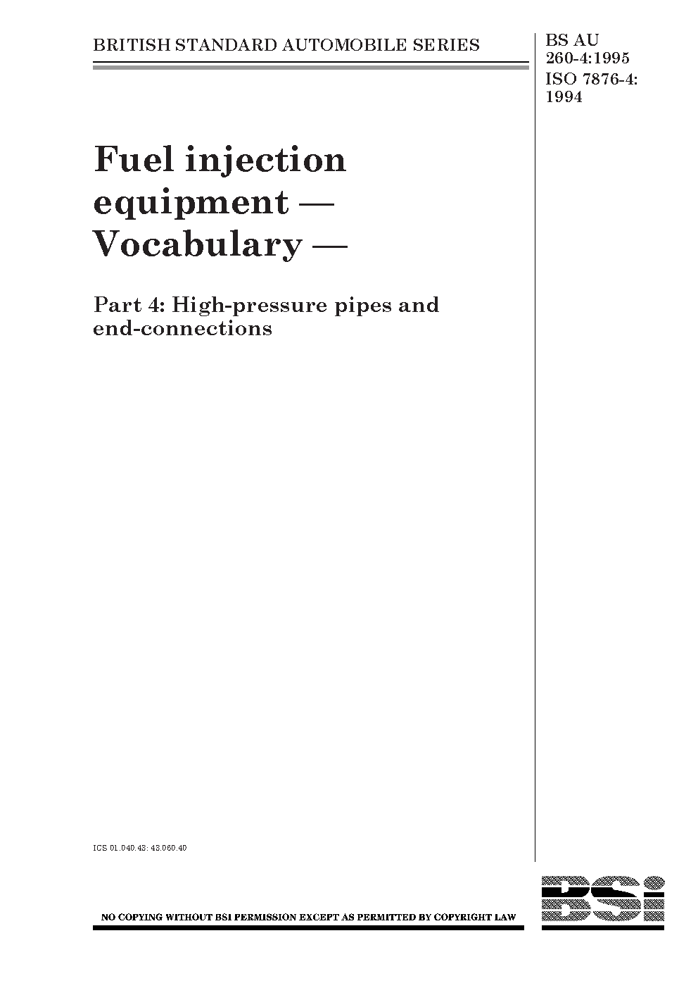 Fuel injection equipment. Vocabulary High-pressure pipes and end-connections