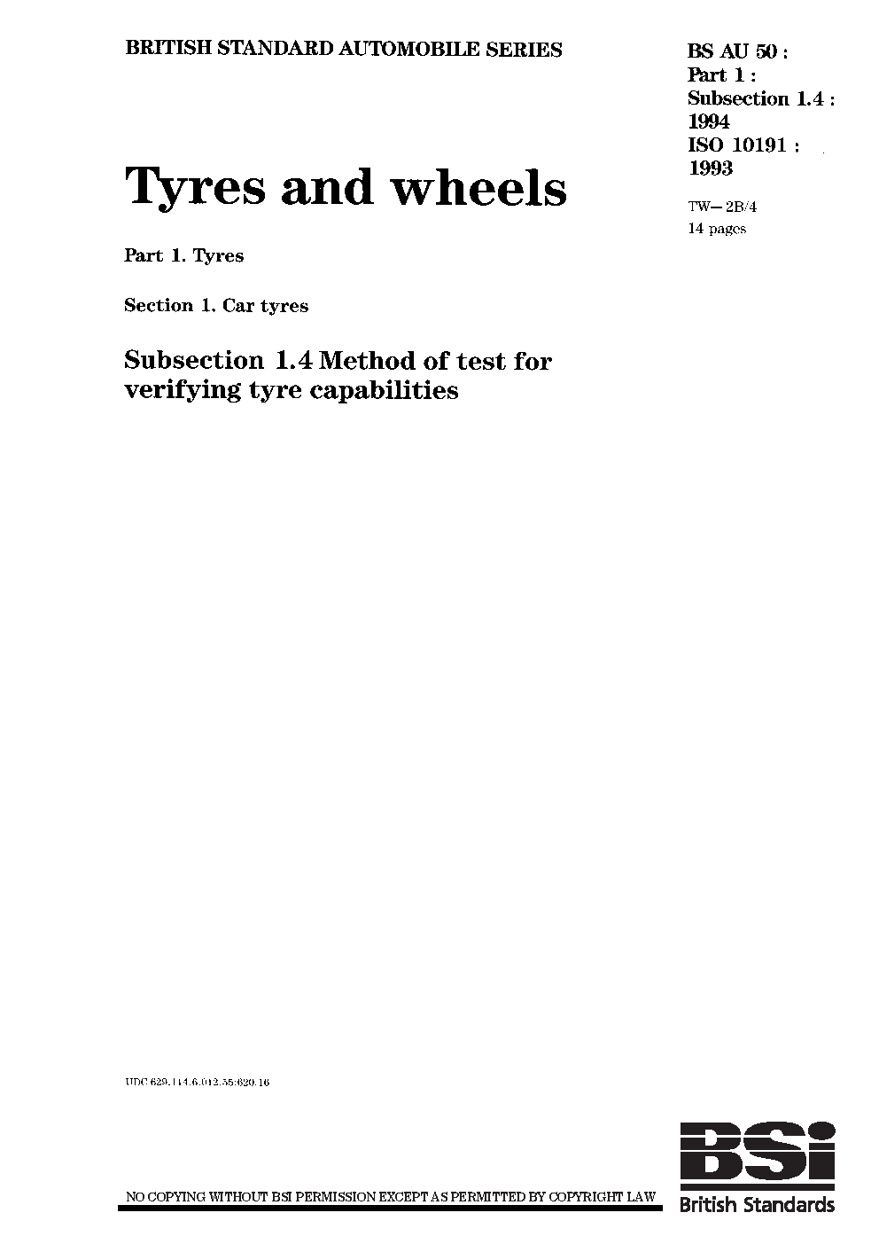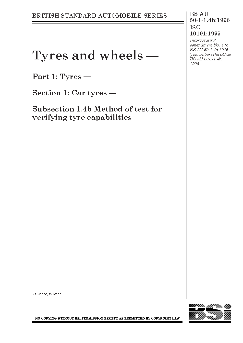 Tyres and wheels. Tyres. Car tyres Method of test for verifying tyre capabilities