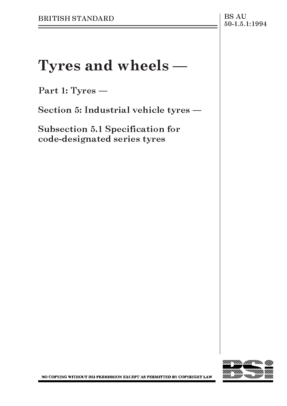Tyres and wheels. Tyres. Industrial vehicle tyres Specification for code-designated series