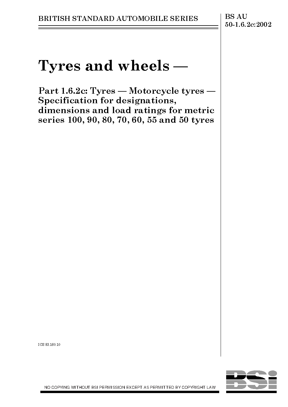 Tyres and wheels. Tyres. Motorcycle tyres Specification for designations, dimensions load ratings metric series 100, 90, 80, 70, 60, 55 50