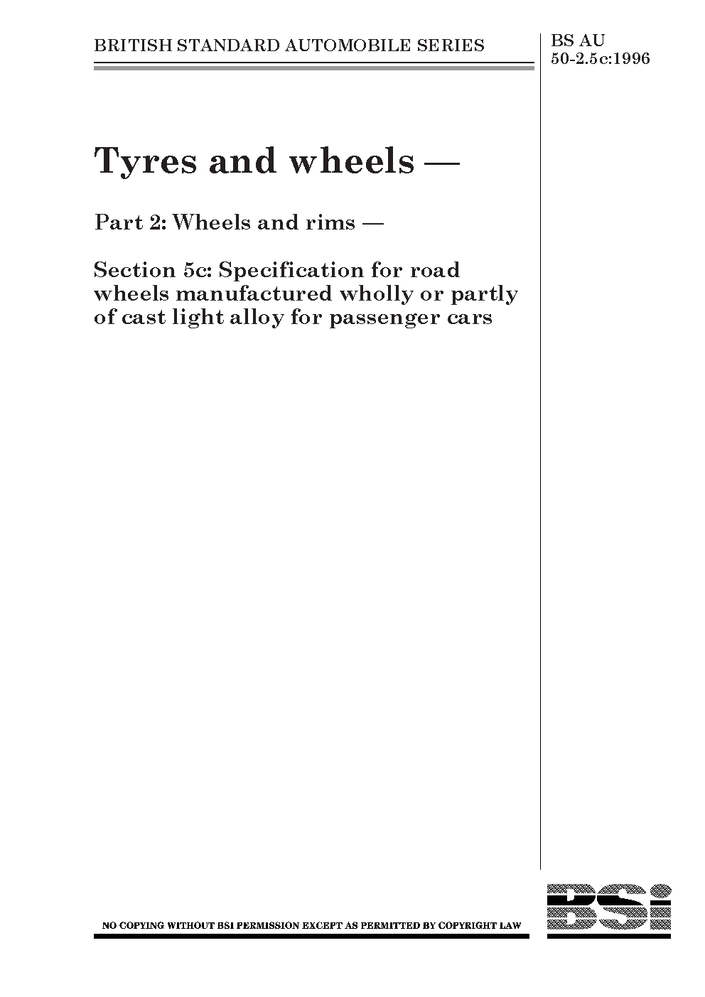 Tyres and wheels. Wheels rims Specification for road wheels manufactured wholly or partly of cast light alloy passenger cars