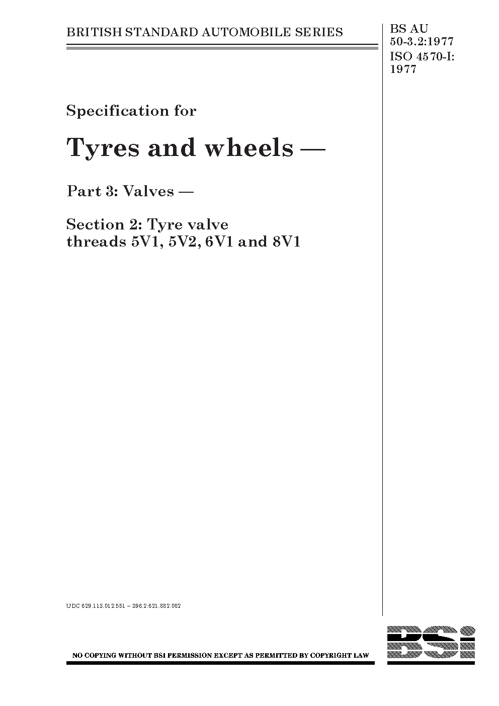 Tyres and wheels. Valves Tyre valve threads 5V1, 5V2, 6V1 8V1