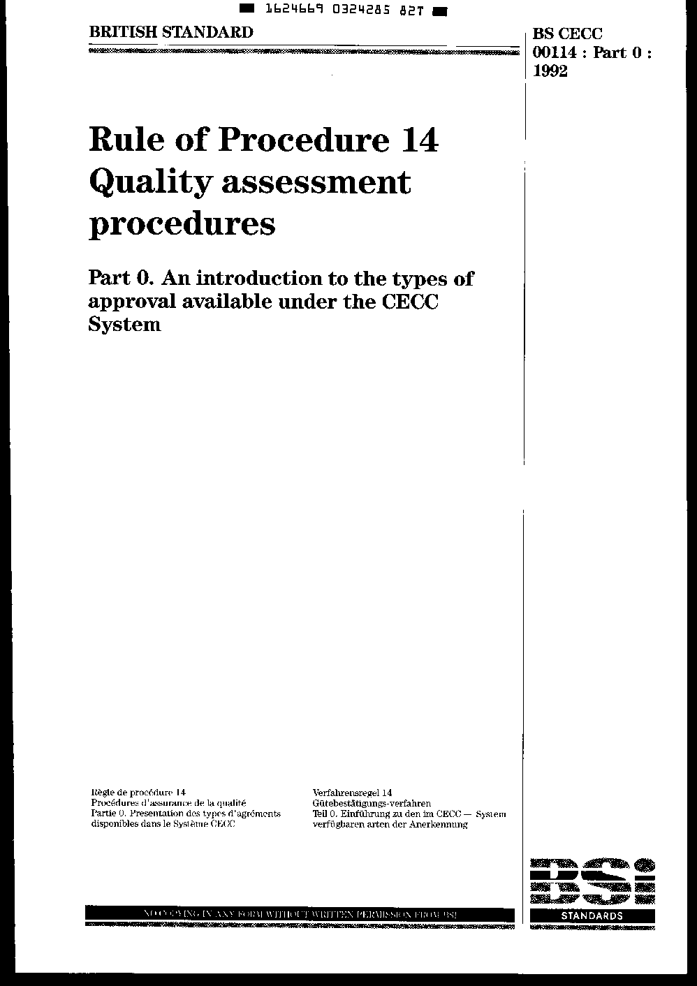 BS CECC 00114-0:1992