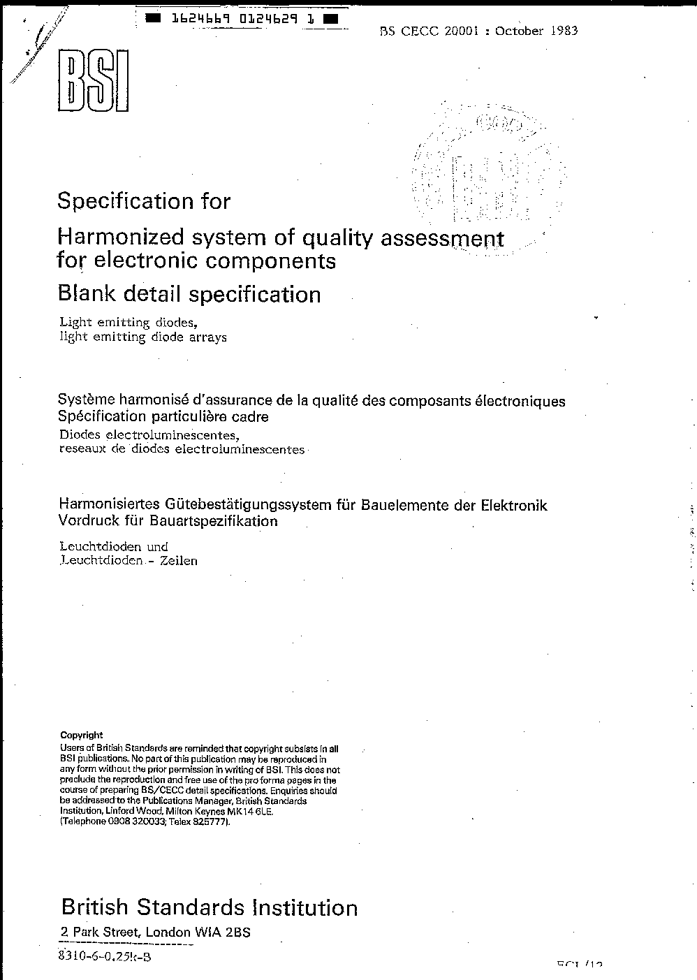 Specification for harmonized system of quality assessment for electronic components. Blank detail specification: light emitting diodes, light emitting diode arrays