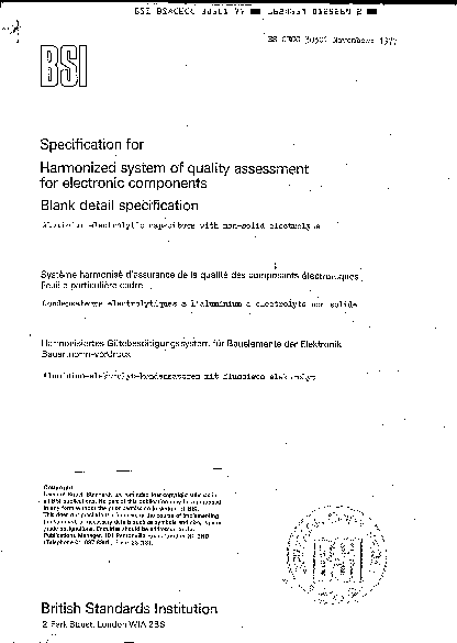 Specification for harmonized system of quality assessment for electronic components. Blank detail specification. Aluminium electrolytic capacitors with non-solid electrolyte. (Assessment level E)
